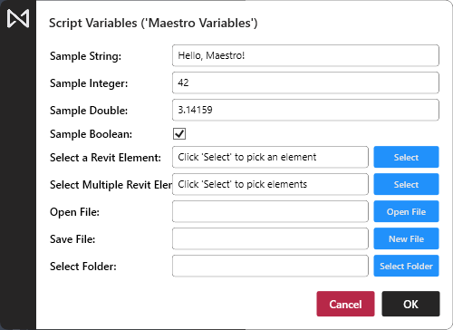 Maestro supports user-prompted variables using a feature called MVARs (short for Maestro Variables). This allows you to design scripts that prompt the user for input at runtime, making your tools more interactive and flexible.